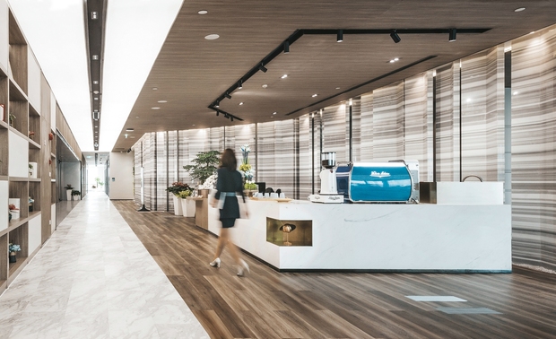步入空间内部,东方的风韵与艺术的雅致共同营建出空间清宁澄净、古朴秀雅的气质美学。大面积的木饰面与清简的线条以现代建制围合出空间方正的布局,低调中有落落大方的气度,清透中有稚拙温润的触感。